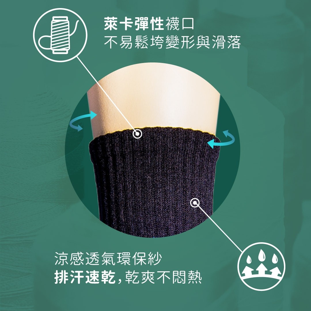 ● 襪子底層採用涼感底紗透氣排汗,乾爽舒適