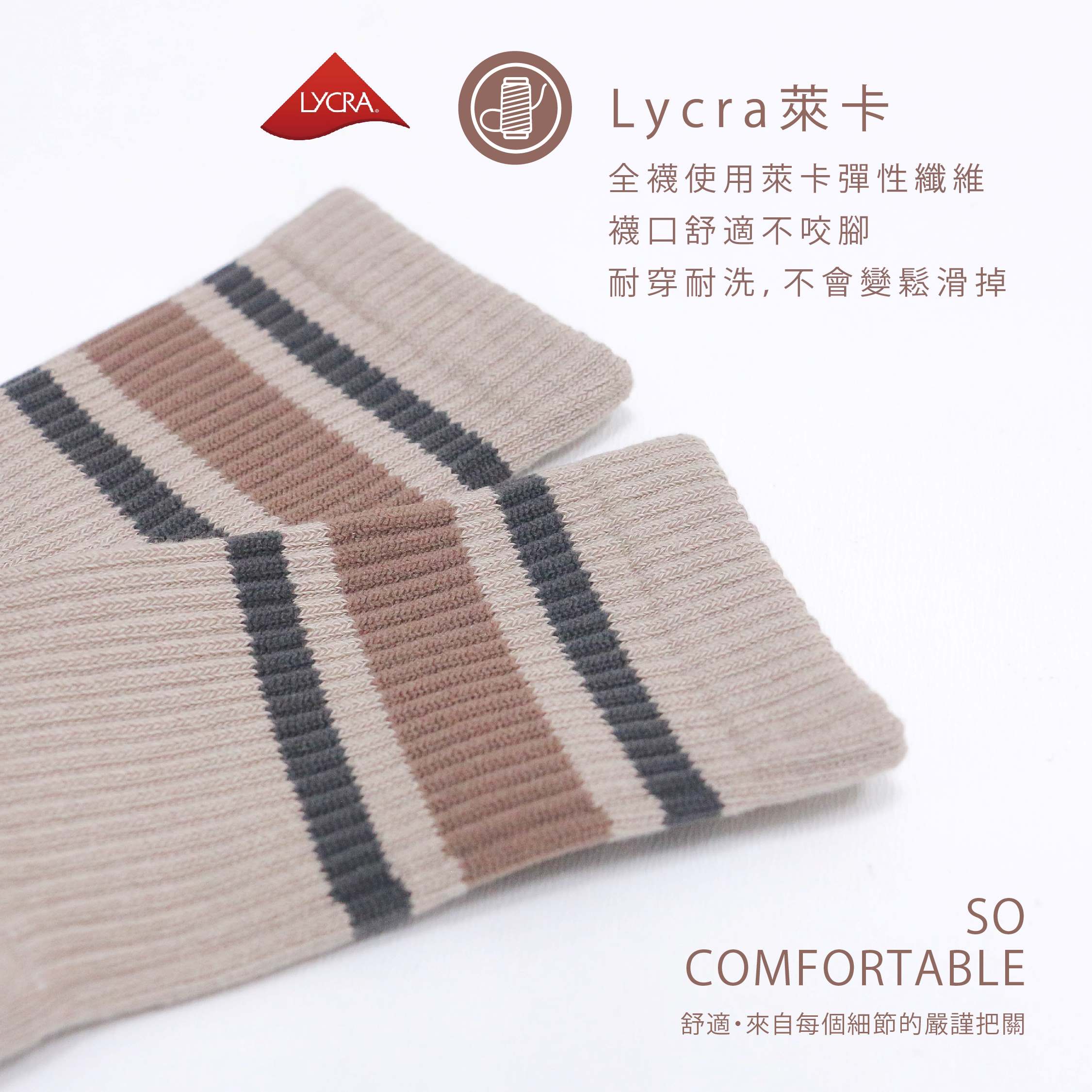 ● 全襪使用萊卡(LYCRA®)彈性纖維,延長襪子壽命,耐穿持久不滑脫