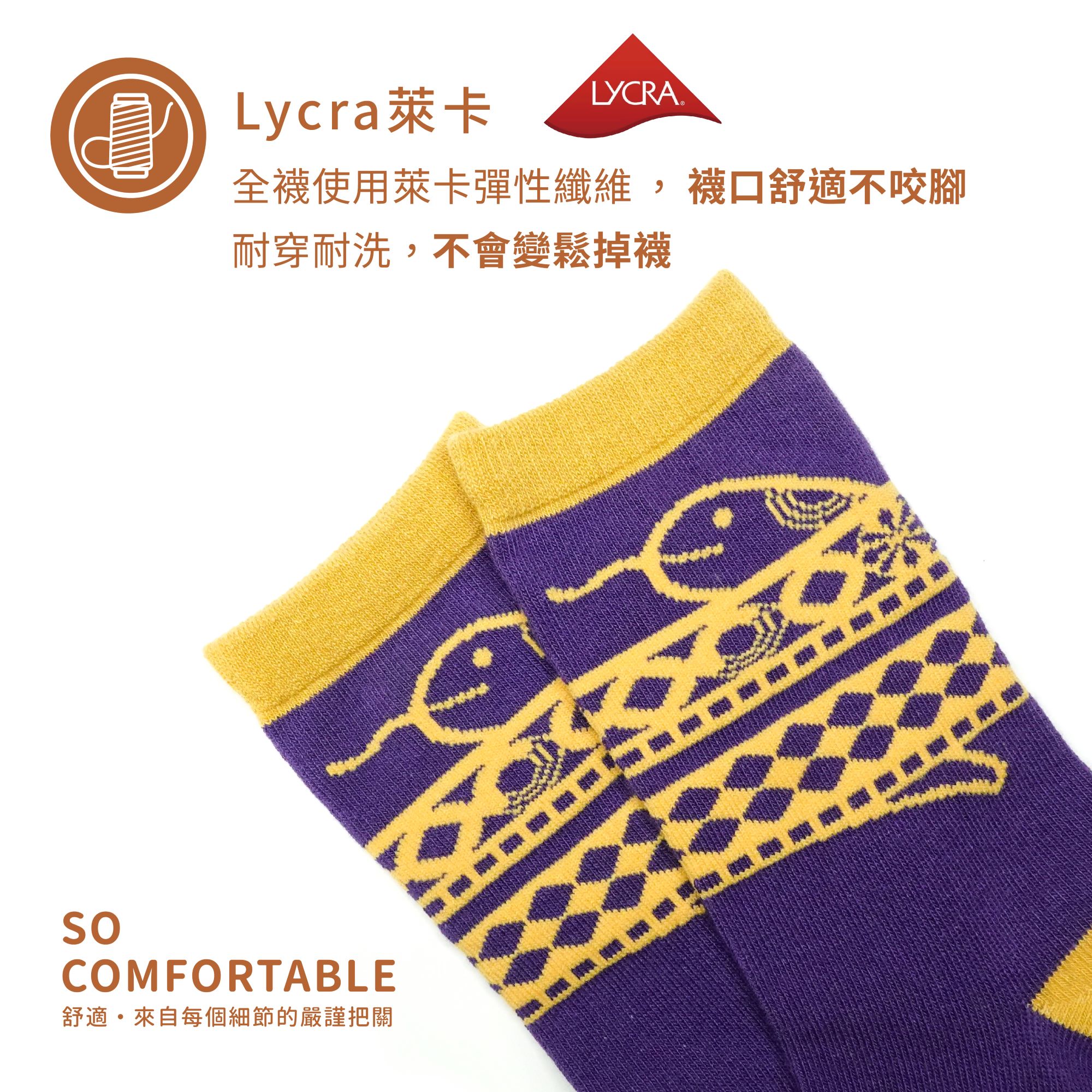 ● 全襪使用萊卡(LYCRA®)彈性纖維,延長襪子壽命,不易變鬆,耐穿不掉襪