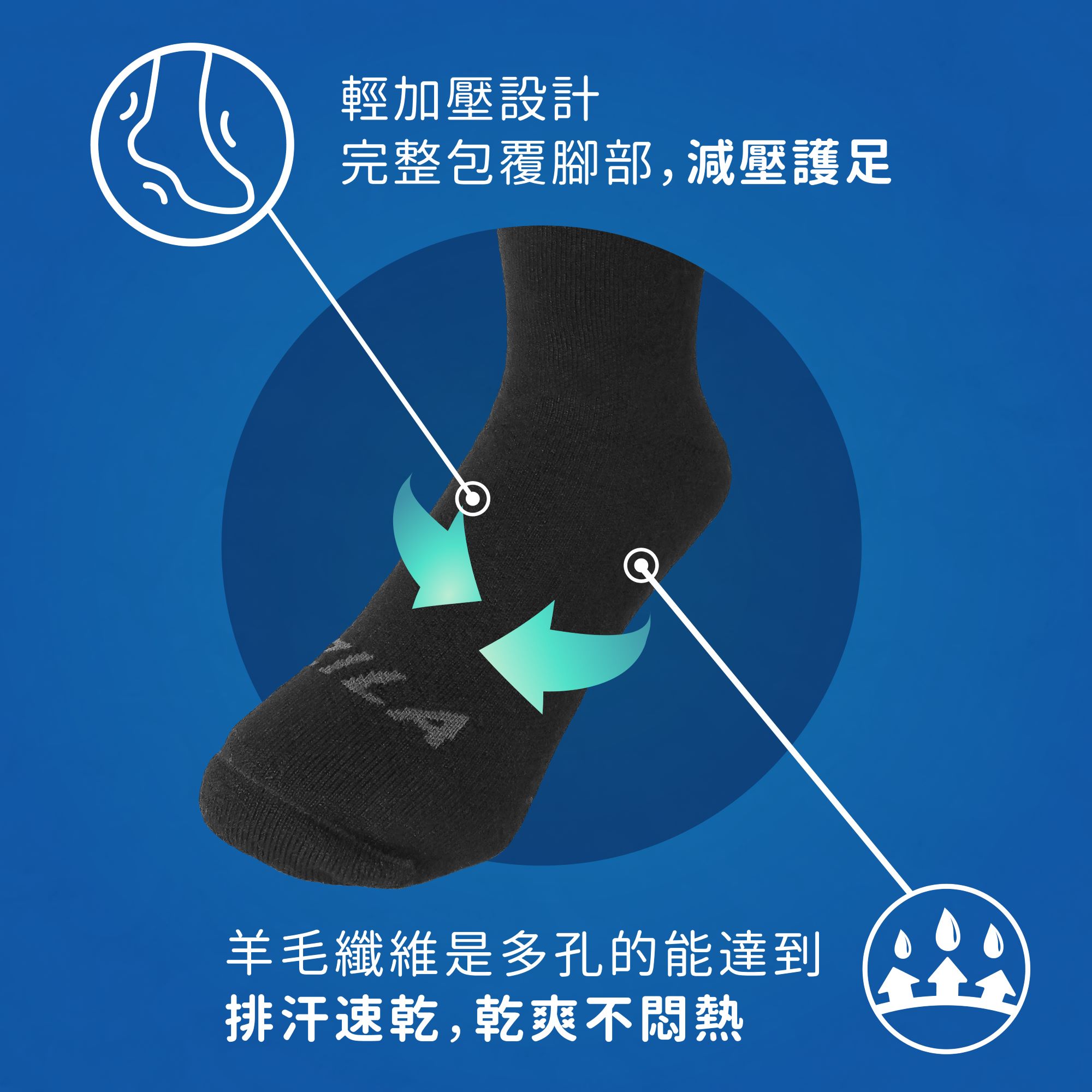 ZILA 美麗諾羊毛‧輕加壓保暖登山襪 | 2尺寸
