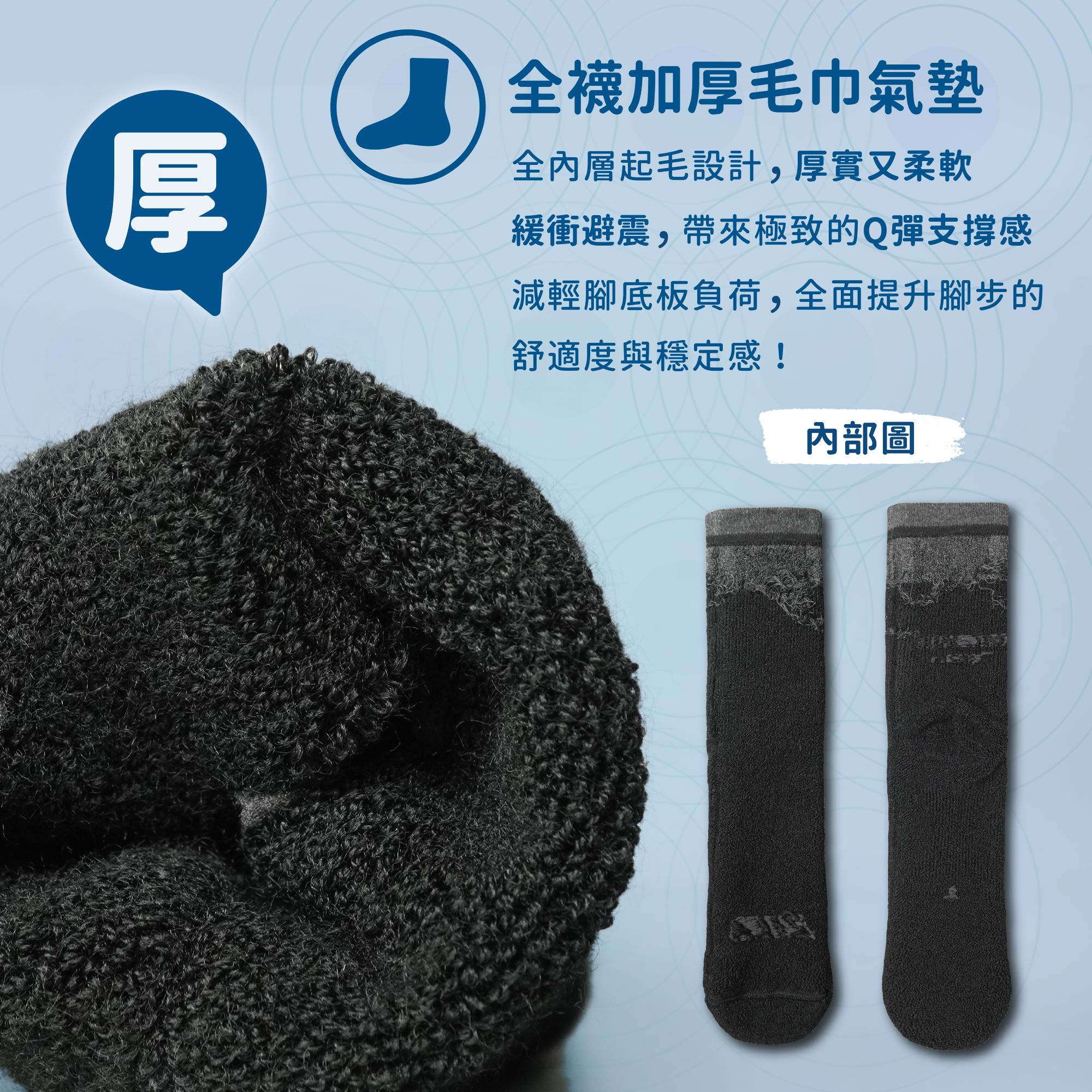 ● 吸震氣墊毛圈,全內層起毛設計,厚實又柔軟,帶來極致的Q彈支撐感,每一步都穩定舒適,全面提升腳步的舒適度與穩定感