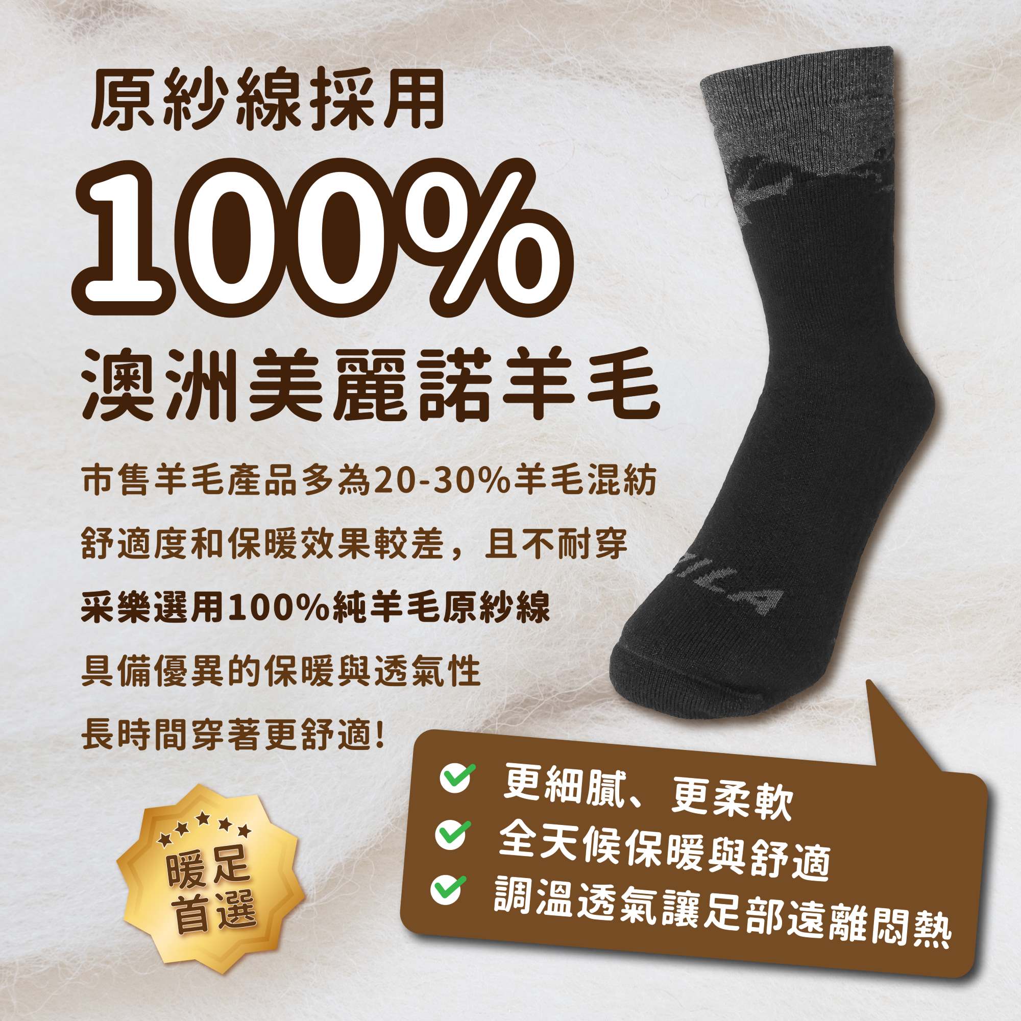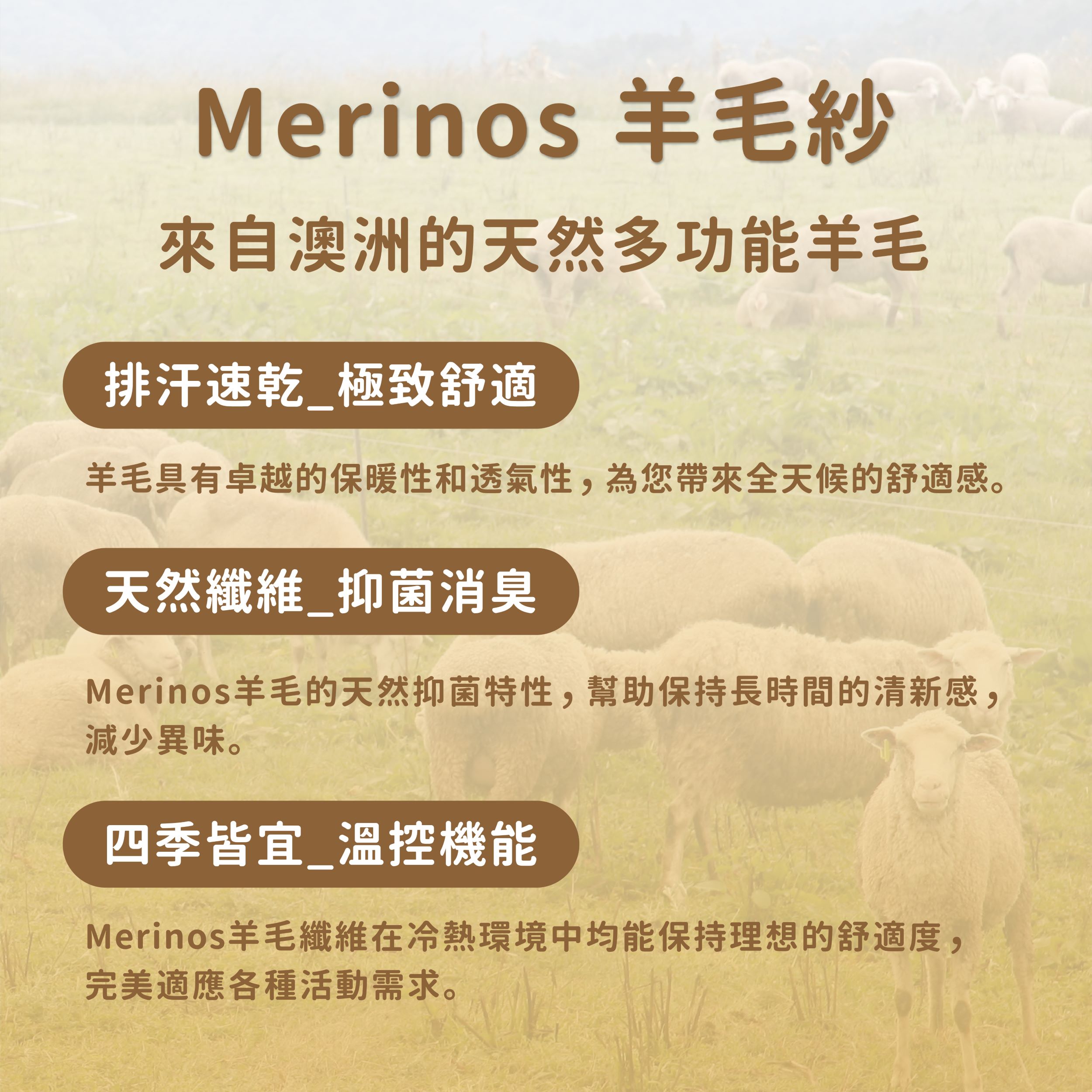 ● 100%澳洲美麗諾羊毛原紗線,透氣速乾,吸濕排汗,保暖又舒適