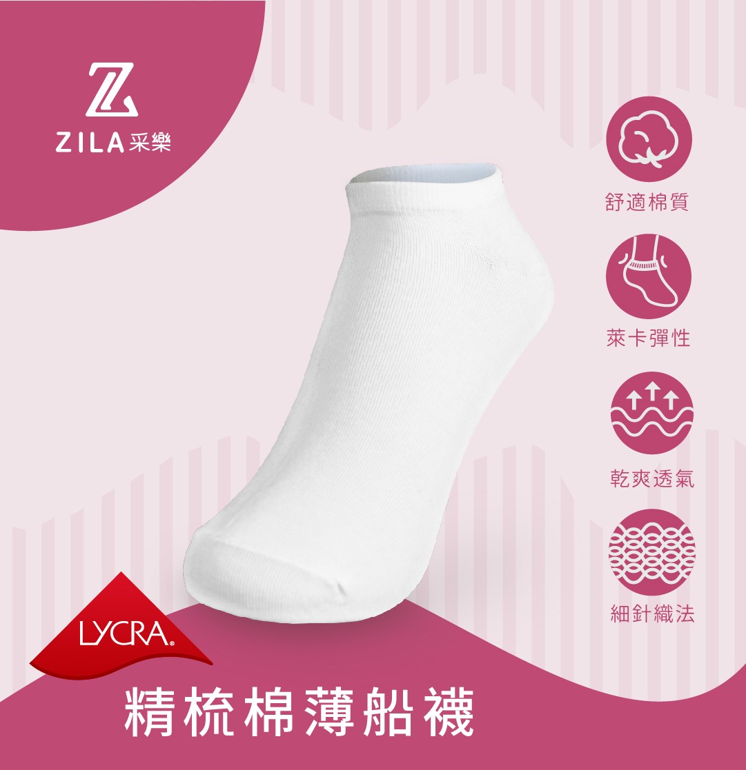 ZILA精梳棉細針薄船襪